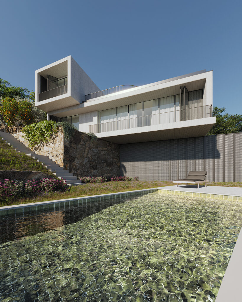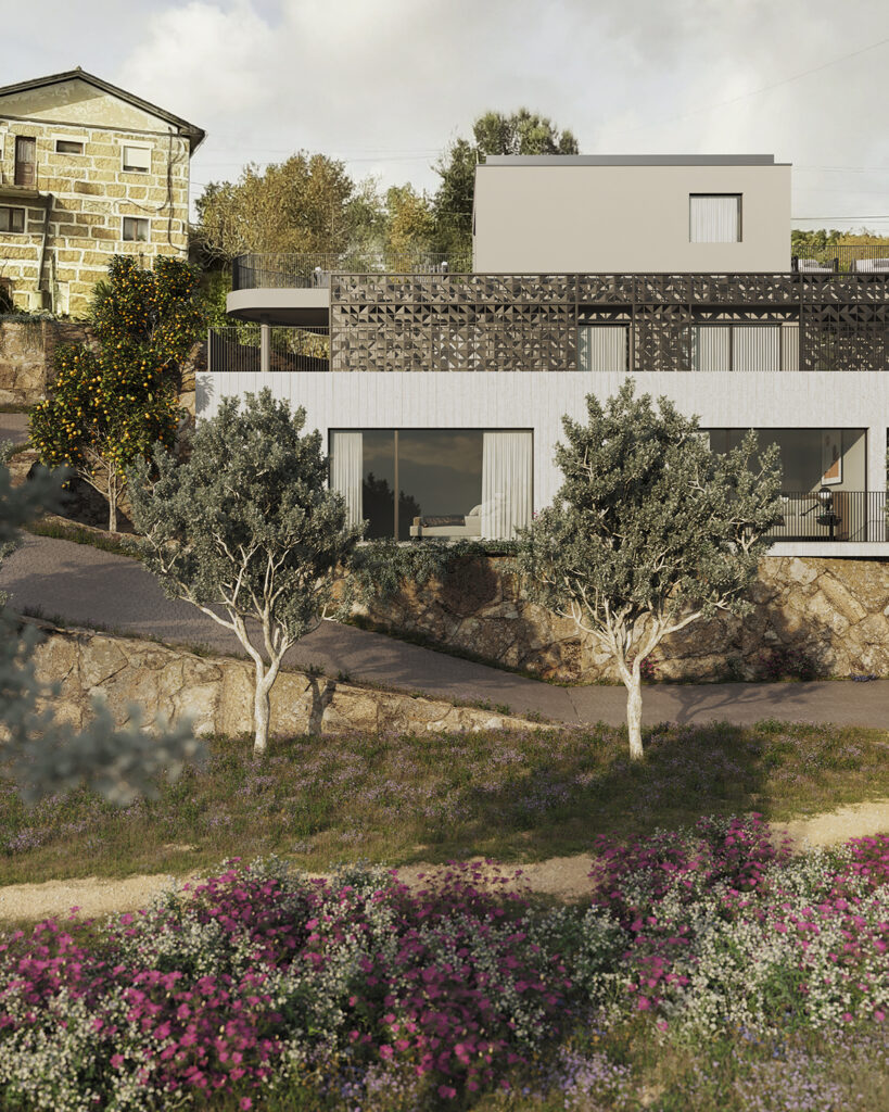 Criar imagens 3D para o projeto de remodelação de uma casa antiga na pitoresca região do Douro, em Portugal, foi uma jornada de harmonizar o passado com o presente. Ao inserir elementos modernos, como o betão aparente e um cobogó de triângulos ao longo de toda a extensão da fachada, procurámos não apenas renovar, mas também revitalizar a essência histórica da residência. Nesse contexto, cada imagem 3D tornou-se uma peça de um quebra-cabeças visual, onde a rusticidade do antigo se funde harmoniosamente com a sofisticação do contemporâneo, refletindo a riqueza cultural e a paisagem deslumbrante da região do Douro.